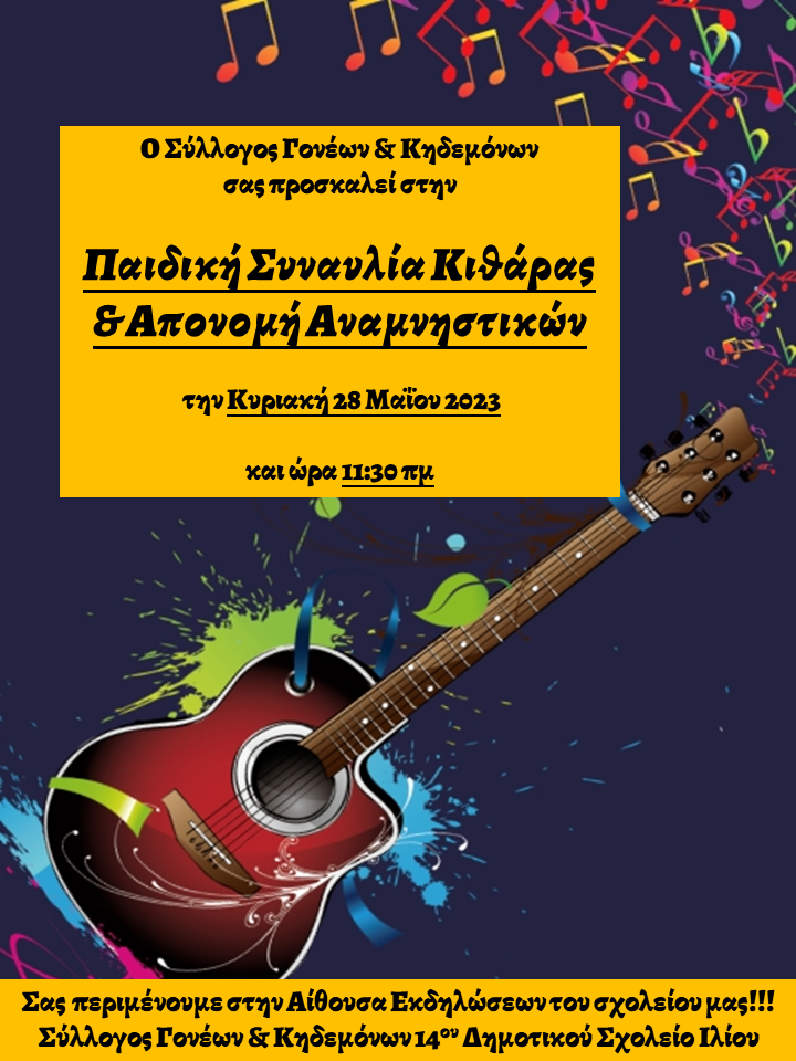 Επειδή και οι μικροί μας μουσικοί αγωνιούν, έφτασε και για αυτούς η μέρα και την Κυριακή 28 Μαΐου 2023 & ώρα 11:30 π.μ., θα έχουν την ευκαιρία να μας διασκεδάσουν με τις νότες τους.